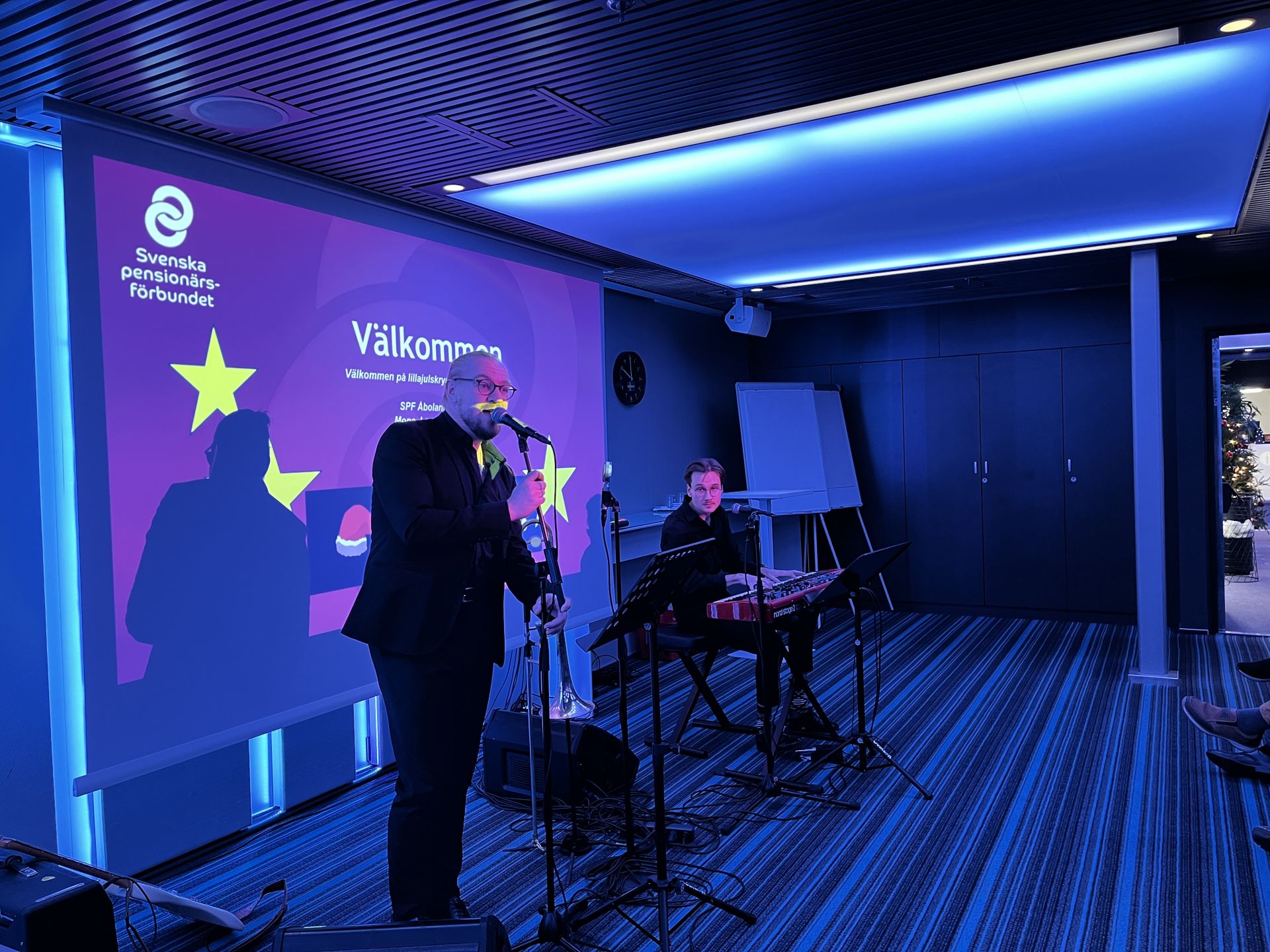 För underhållningen stod duon Gustav Nyström och Oliver Tschernij som spelade och sjöng nya samt äldre klassiker. Vi i publiken fick också sjunga några julsånger.