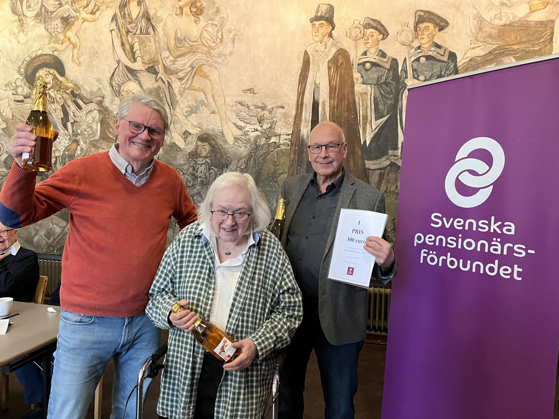 Vinnare blev Hufvudstadsbladets Seniorer med fr.v. Henrik Stenbäck, Christina Juthas och Nils-Erik Friis. De kammade hem 28 poäng.